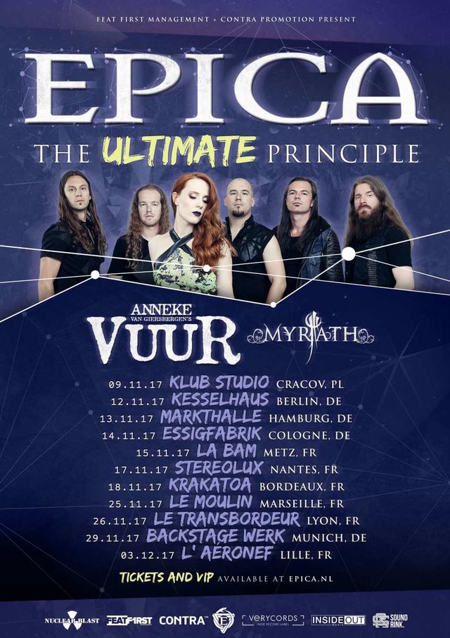 Epica sera de nouveau en tournée en Europe en novembre. Le Ultimate Principle Tour passera par la France (6 dates). Vuur le nouveau groupe de Anneke Van Giersbergen et les tunisiens de Myrath, accompagneront cette tournée.