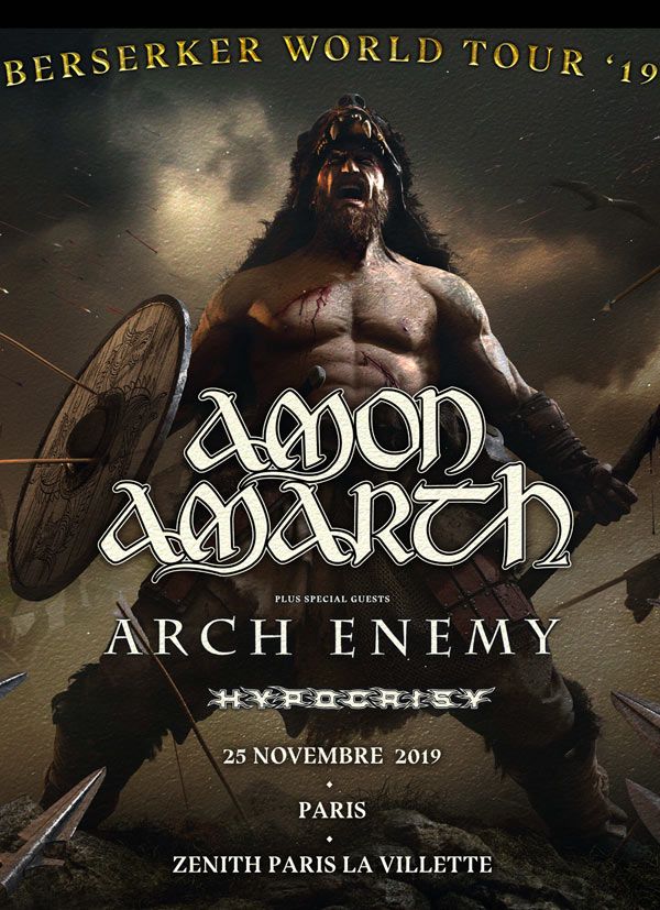 Le Berserker World Tour du groupe Amon Amarth (Death Mélo) passera au Zenith de Paris, le 25 Novembre 2019. Arch Enemy (Death Mélo) sera en première partie.