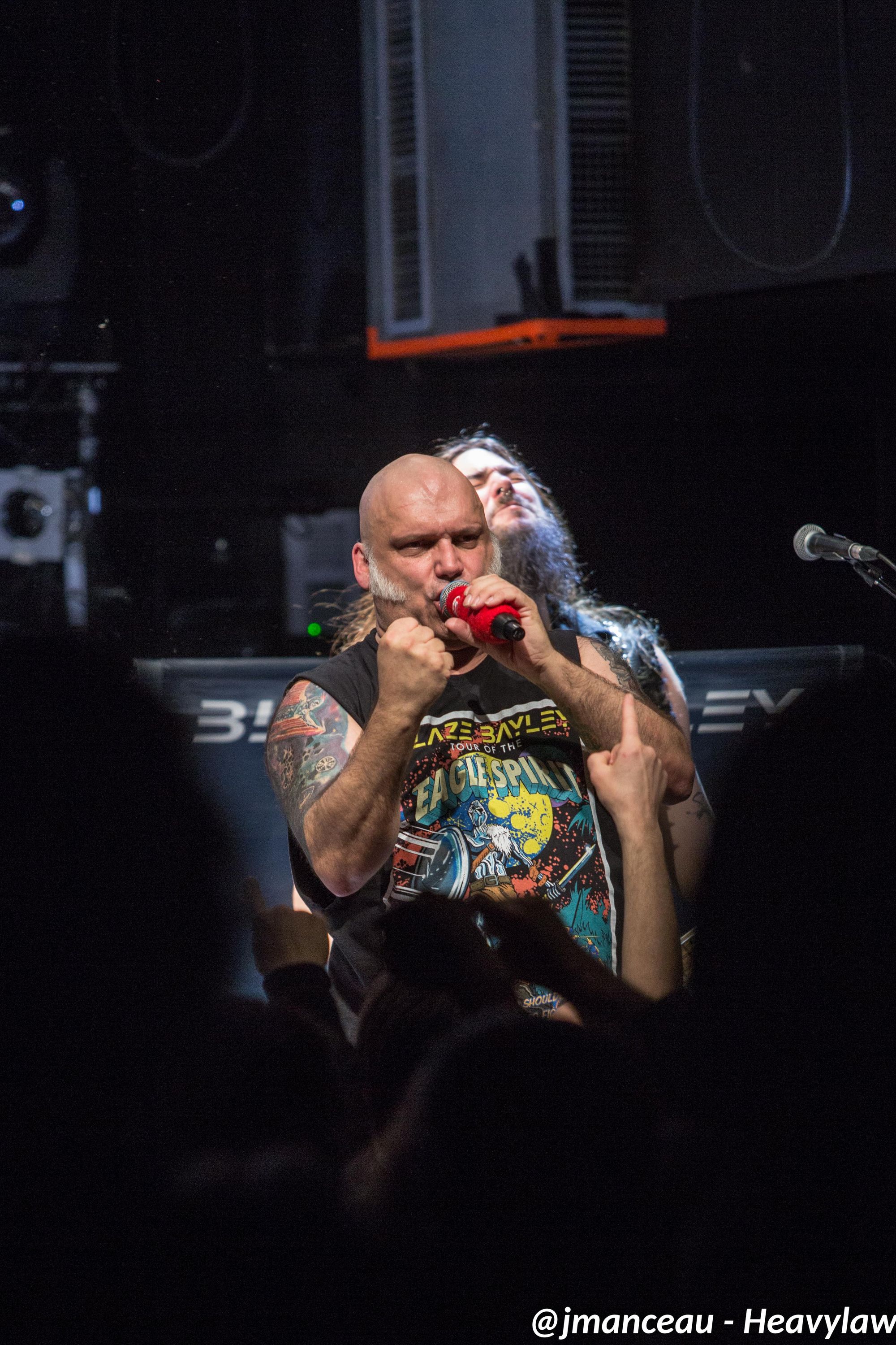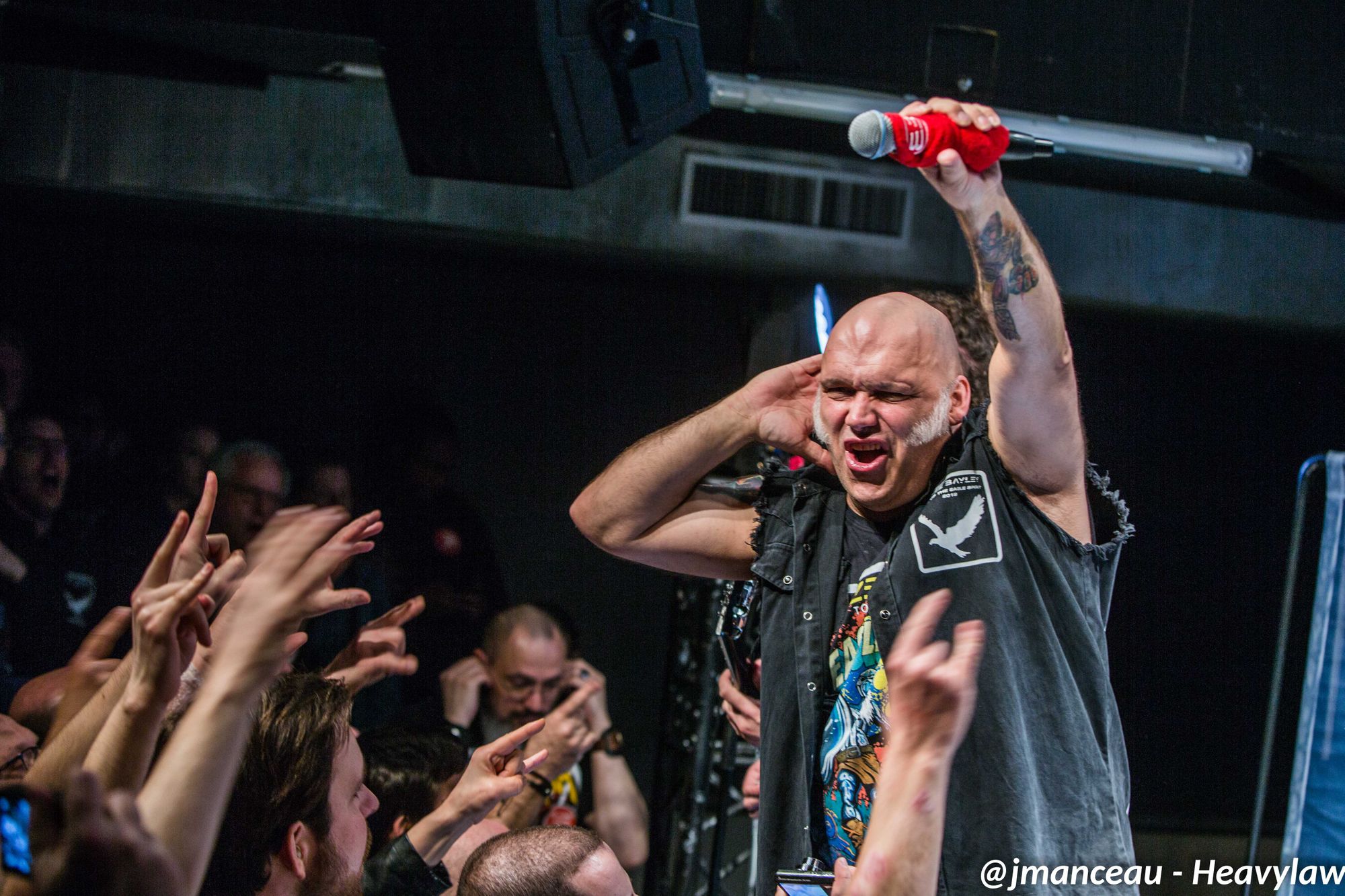Un dévouement sans faille pour ses fans qui évidemment le lui rendent bien en mettant une ambiance de feu dans cette péniche, hurlant leurs tripes sur les refrains, chantant les mélodies autant que possible, ou plus sauvagement pour certains se jettant les uns contre les autres (surtout sur les cover de maiden).