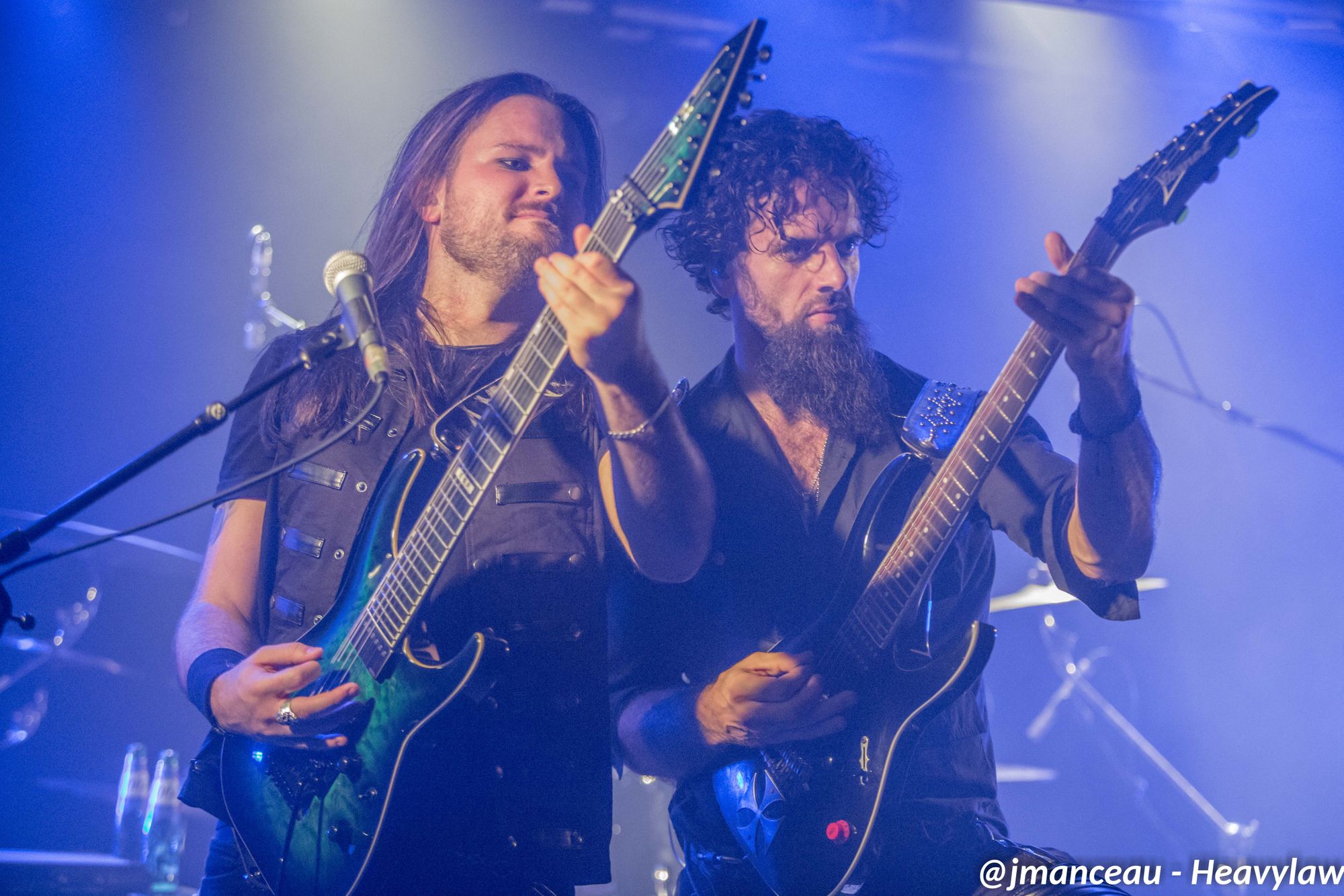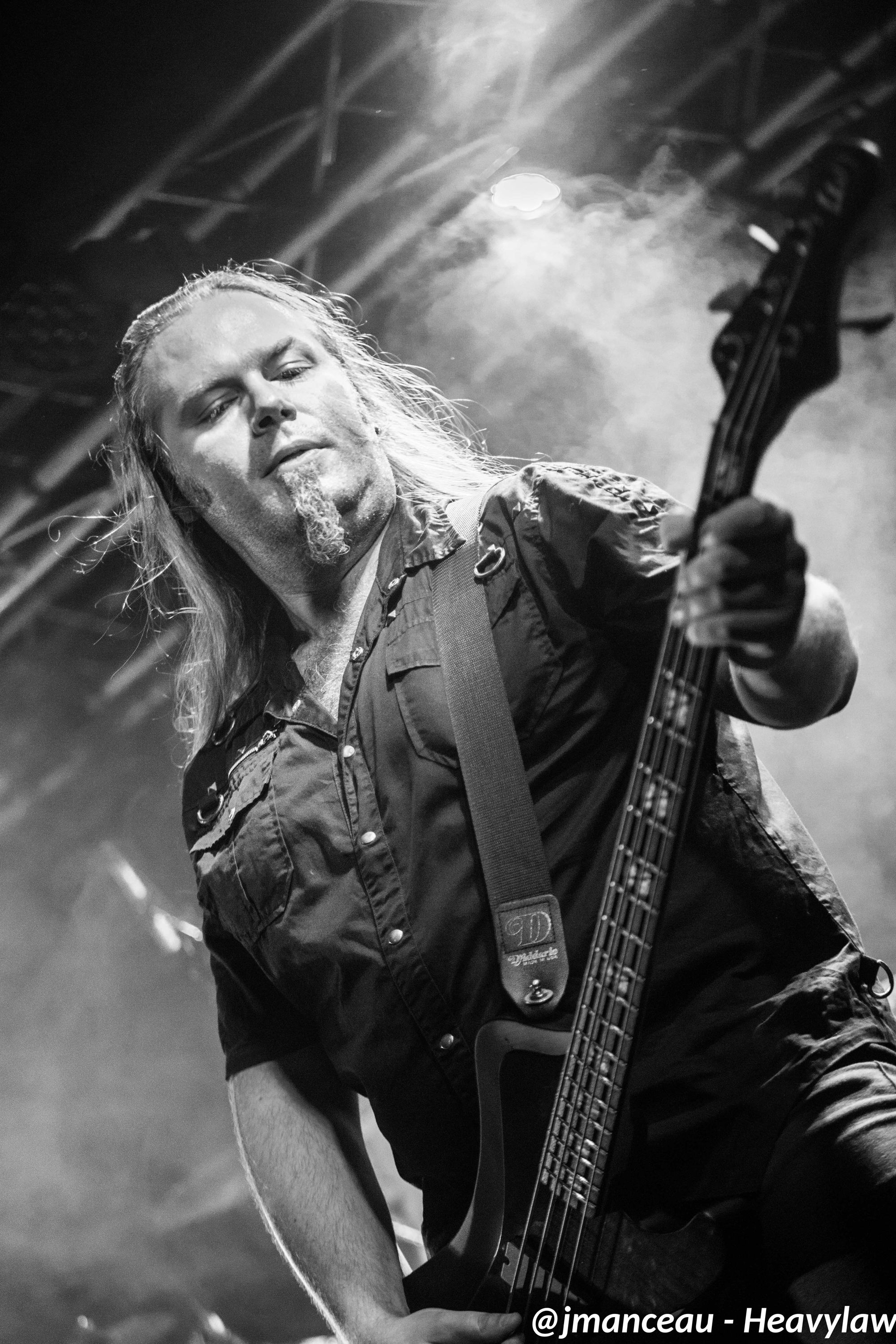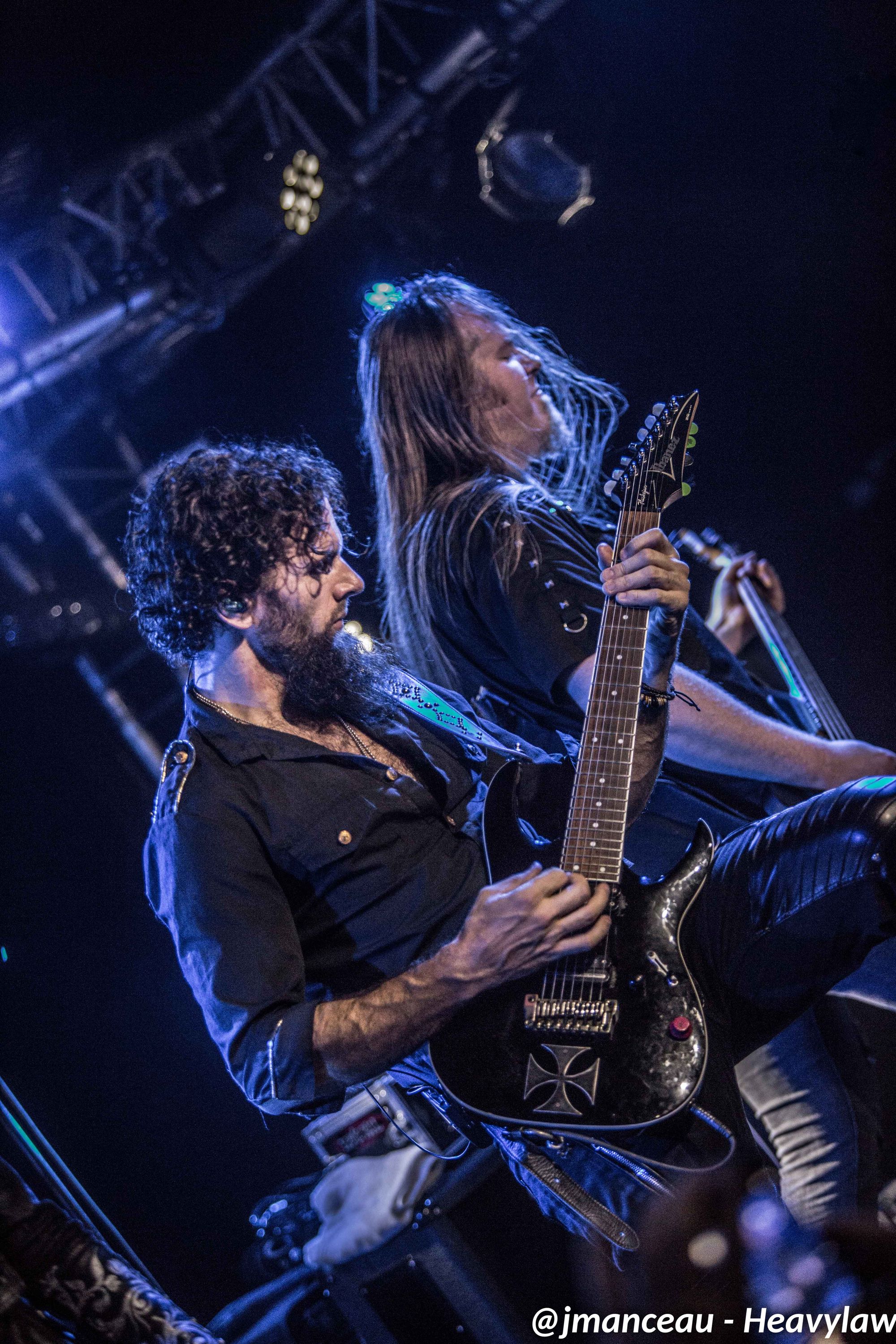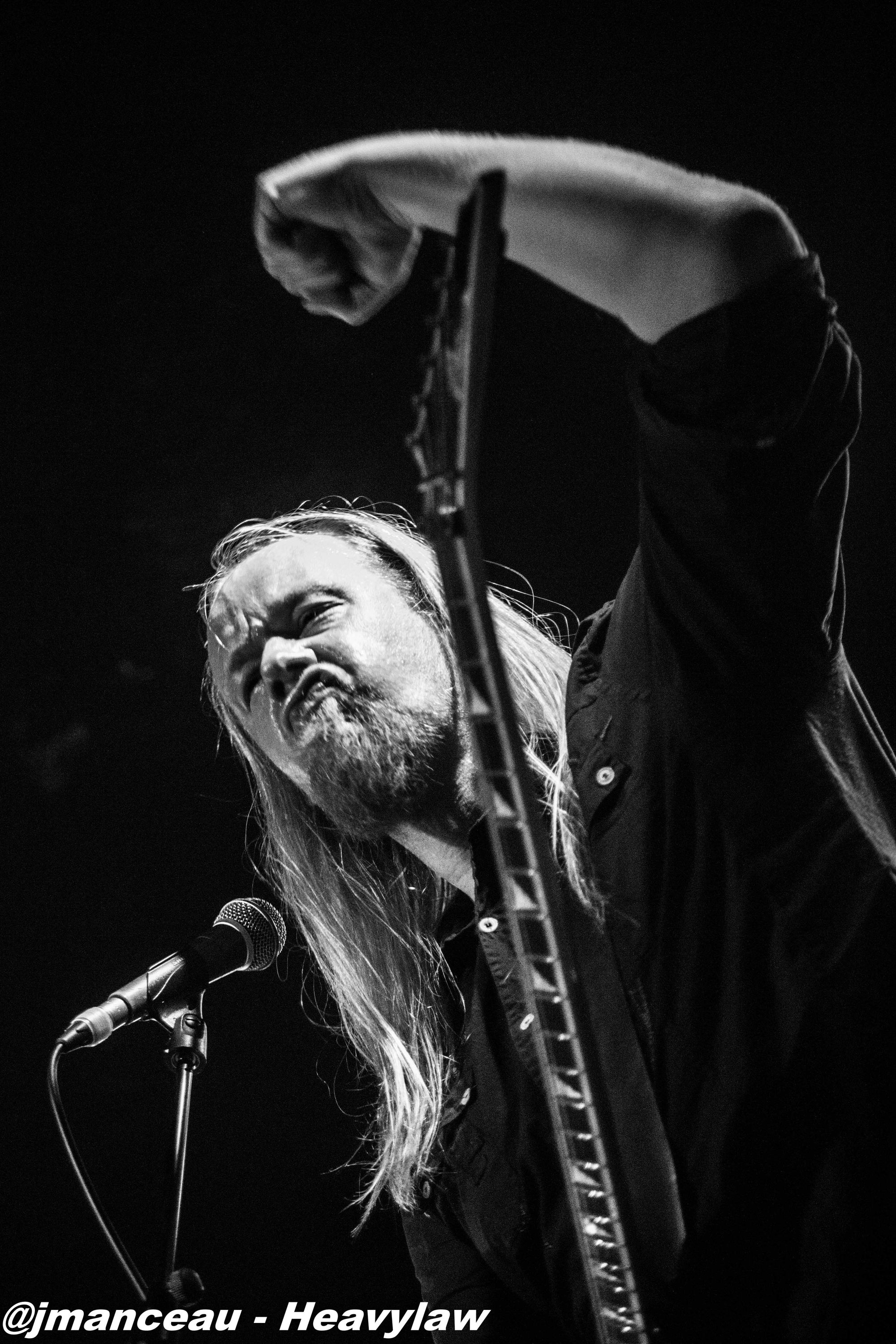 De part et d’autre de la scène, nous avons le pilier fondateur Morten Veland, vissé sur la droite en véritable stéréotype du norvégien, le grand viking costaud, qui dégage une espèce de force tranquille à la Basse, et entre deux bières gère aisément ses parties de chant guttural. Et complètement sur la gauche, le dernier arrivé dans le groupe et deuxième français sur scène (cocorico) Nils Courbaron, tout en maitrise et technicité à la guitare, qui passe également derrière le micro pour assurer le chant clair sur quelques titres.