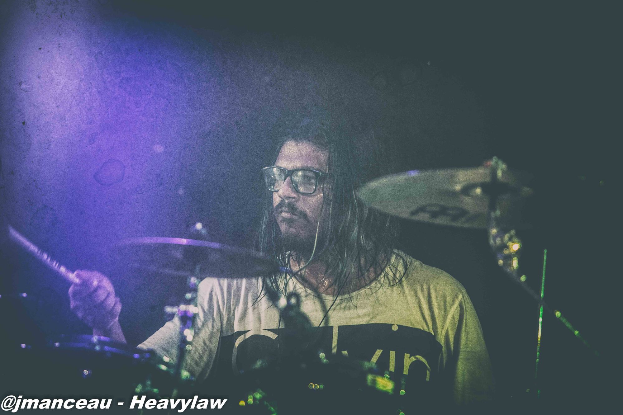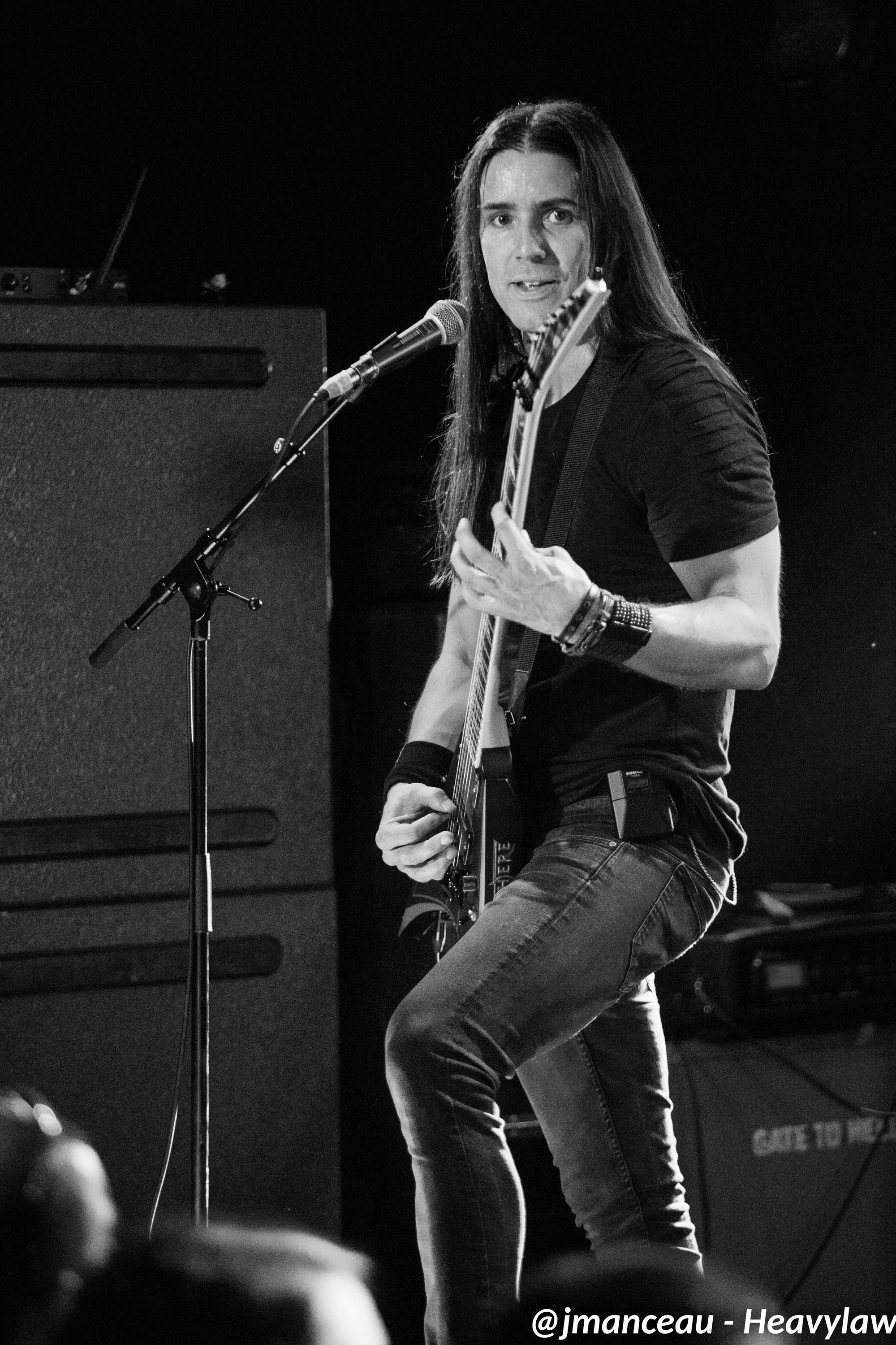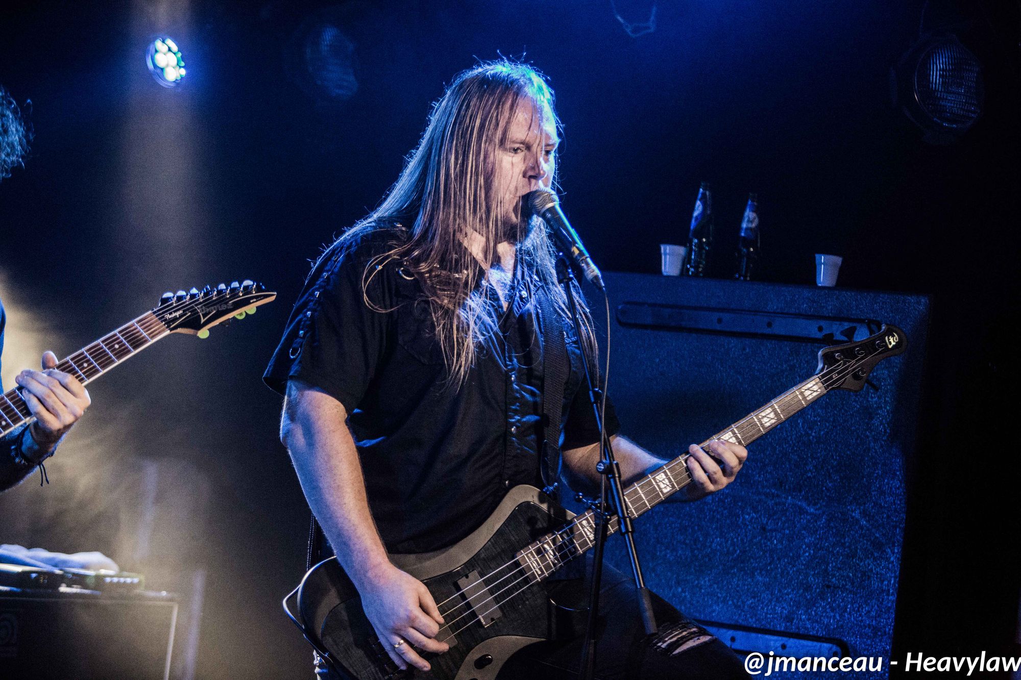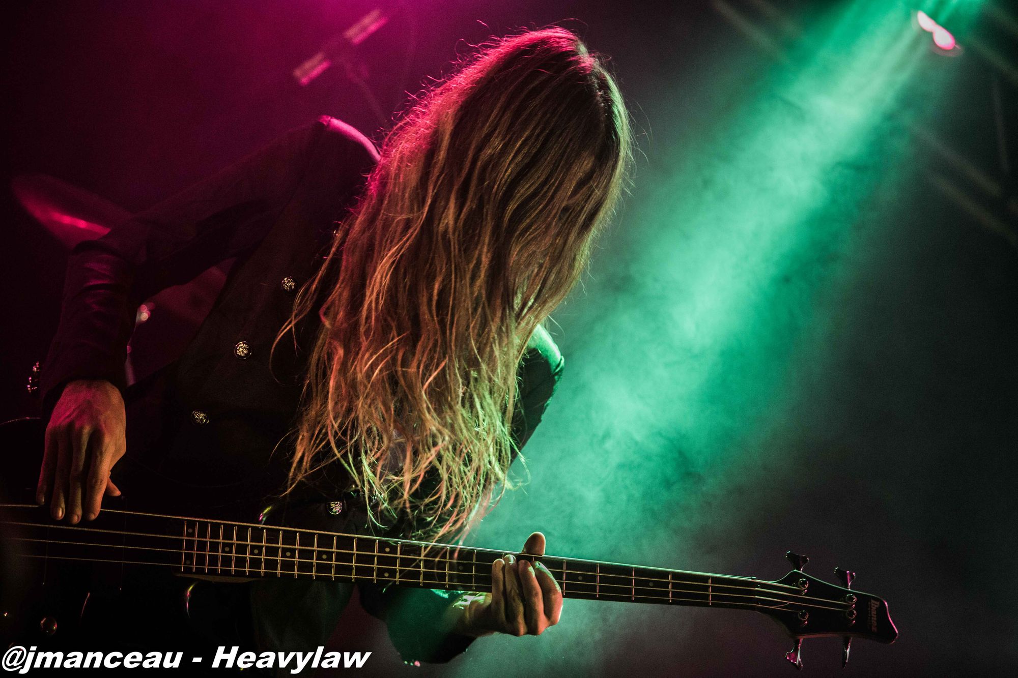 De part et d’autre de la scène, nous avons le pilier fondateur Morten Veland, vissé sur la droite en véritable stéréotype du norvégien, le grand viking costaud, qui dégage une espèce de force tranquille à la Basse, et entre deux bières gère aisément ses parties de chant guttural. Et complètement sur la gauche, le dernier arrivé dans le groupe et deuxième français sur scène (cocorico) Nils Courbaron, tout en maitrise et technicité à la guitare, qui passe également derrière le micro pour assurer le chant clair sur quelques titres.