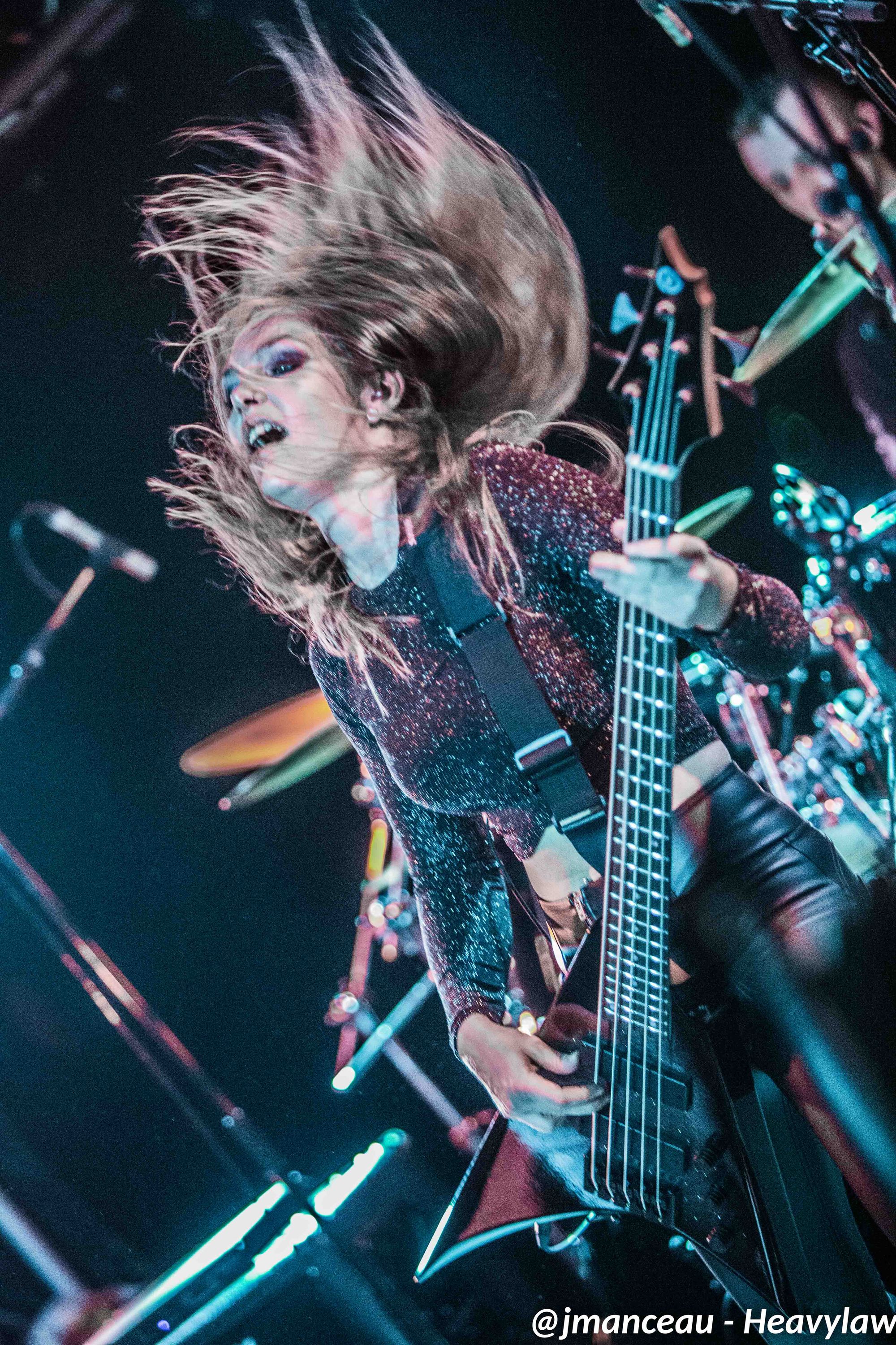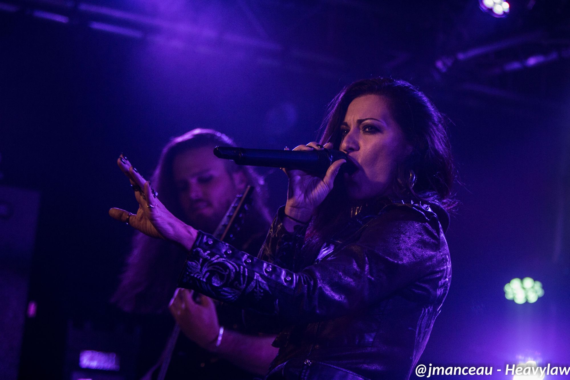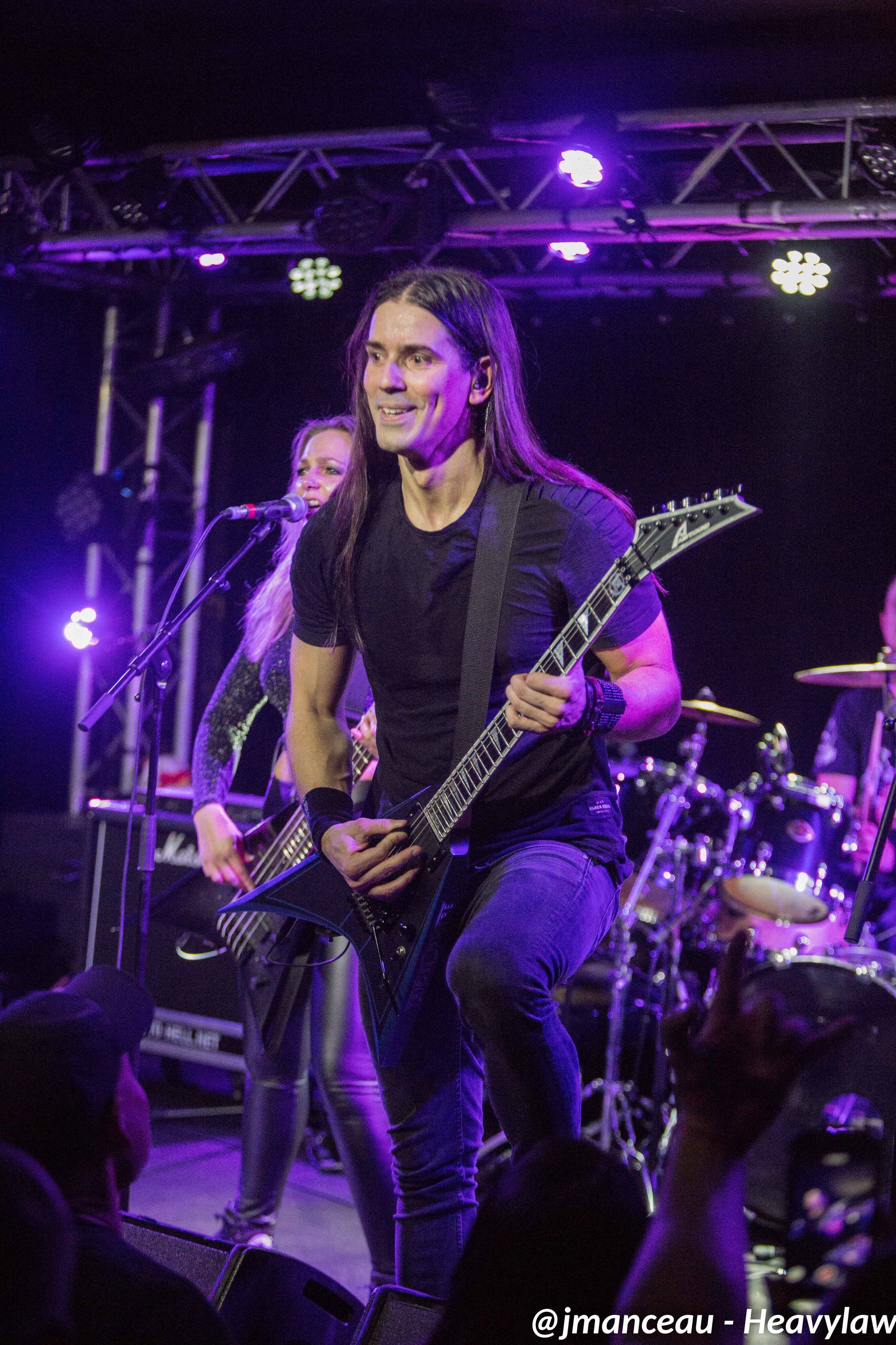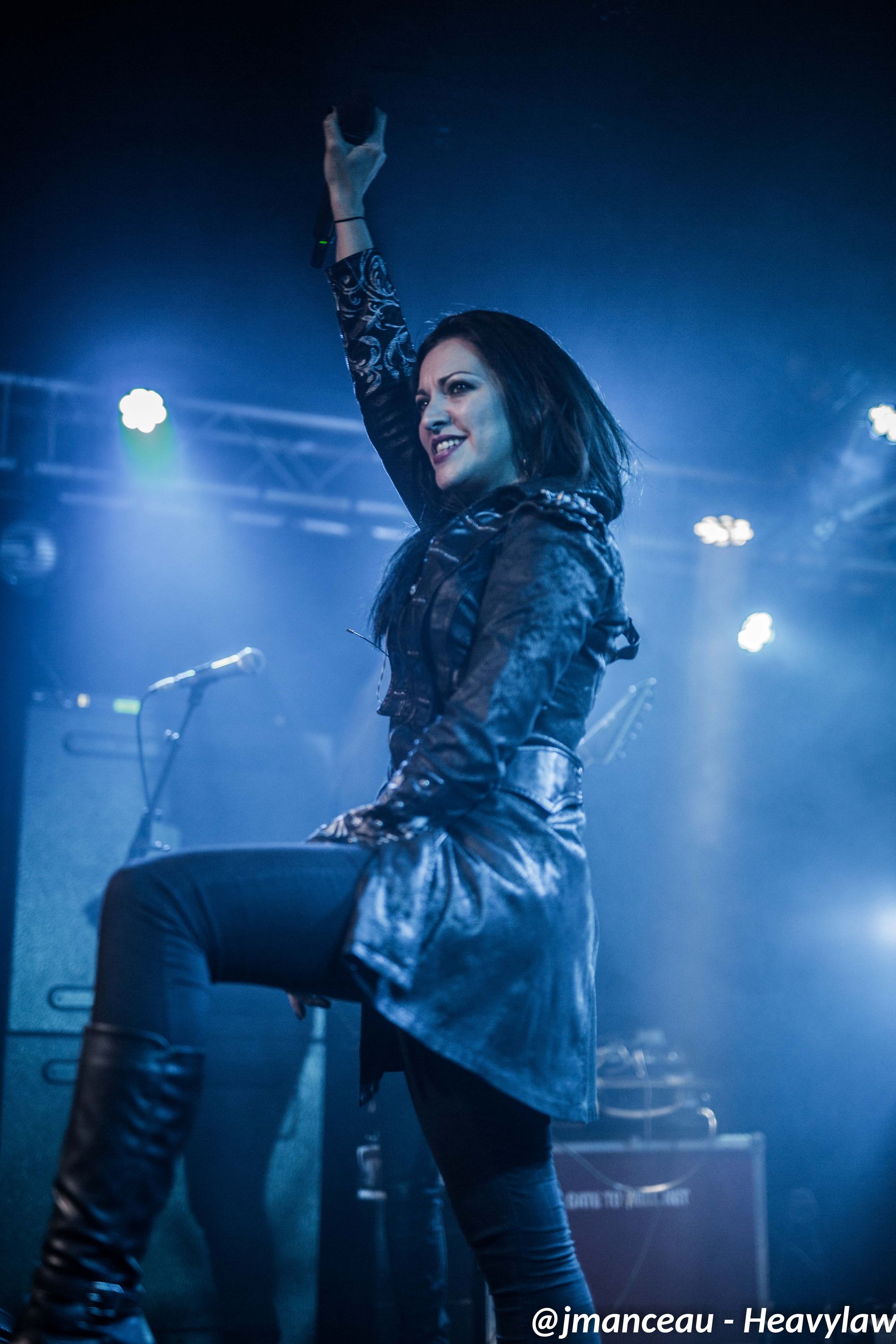 Je ne connaissais absolument rien de ce groupe avant de m’imprégner des derniers albums quelques heures avant ce concert. Deux derniers albums justement où figure au chant une Française, la pétillante Emmanuelle Zoldan, chanteuse mezzo-soprano de formation lyrique, qui mérite largement sa place au sein de cette formation étiquetée métal gothique symphonique, et qui dès son entrée capte toute l’attention sur elle.