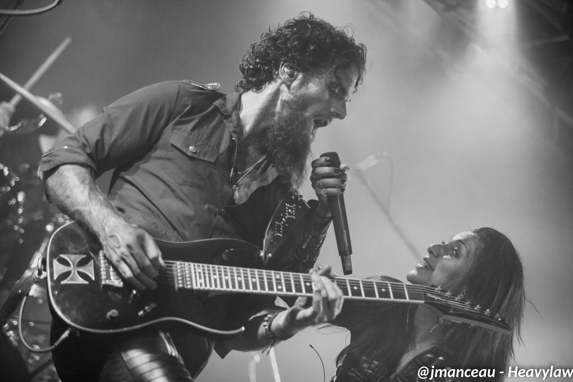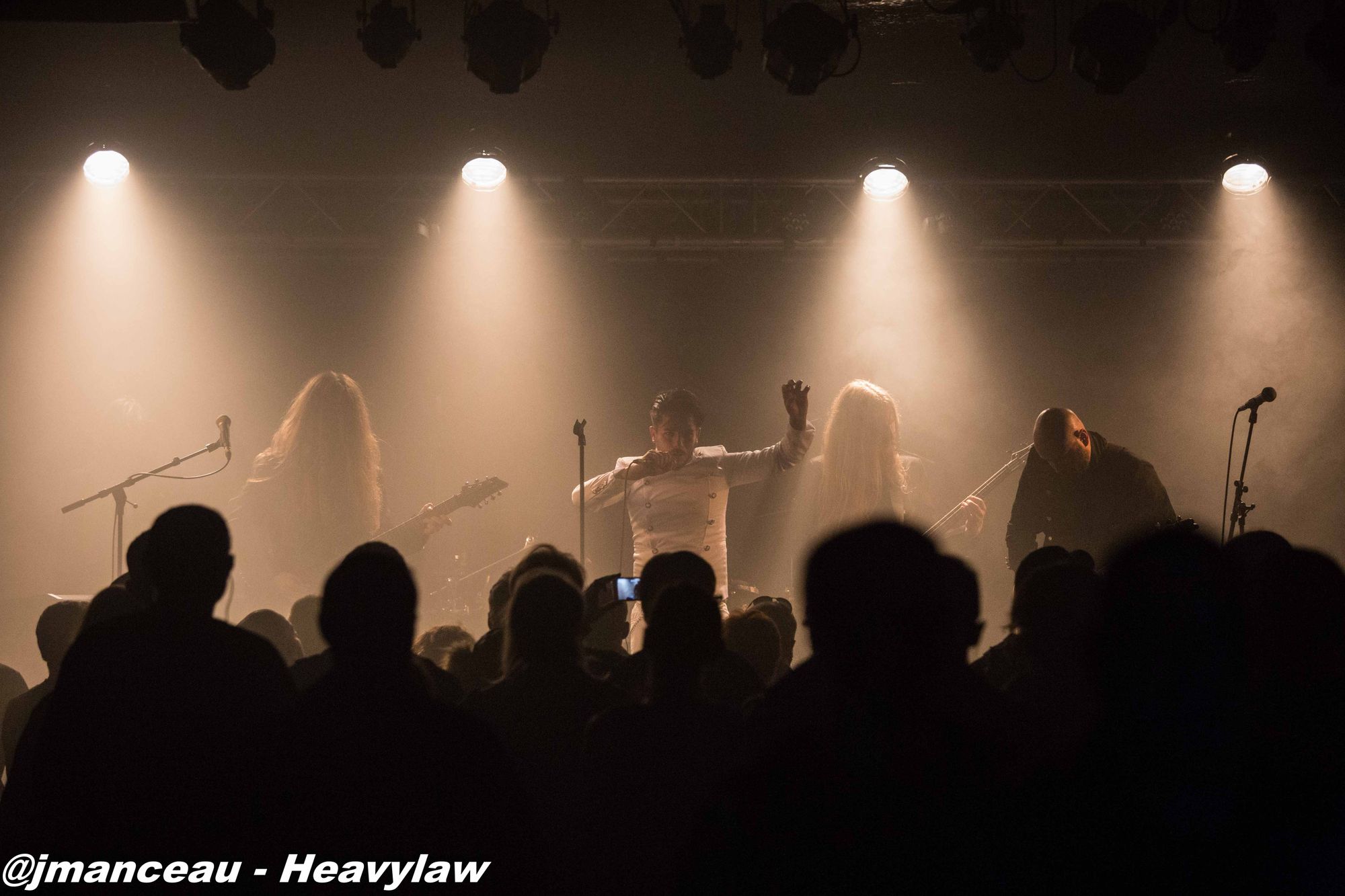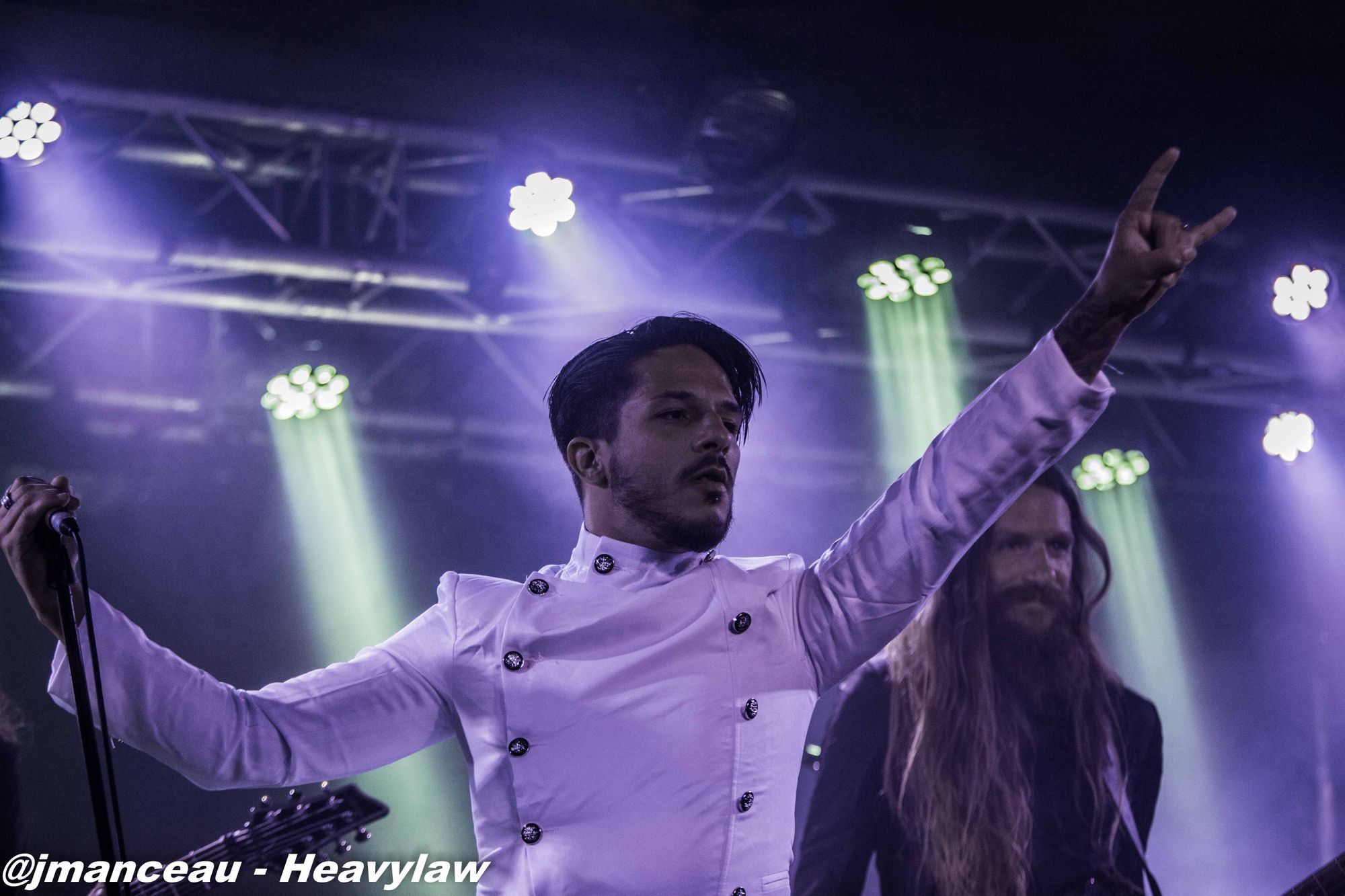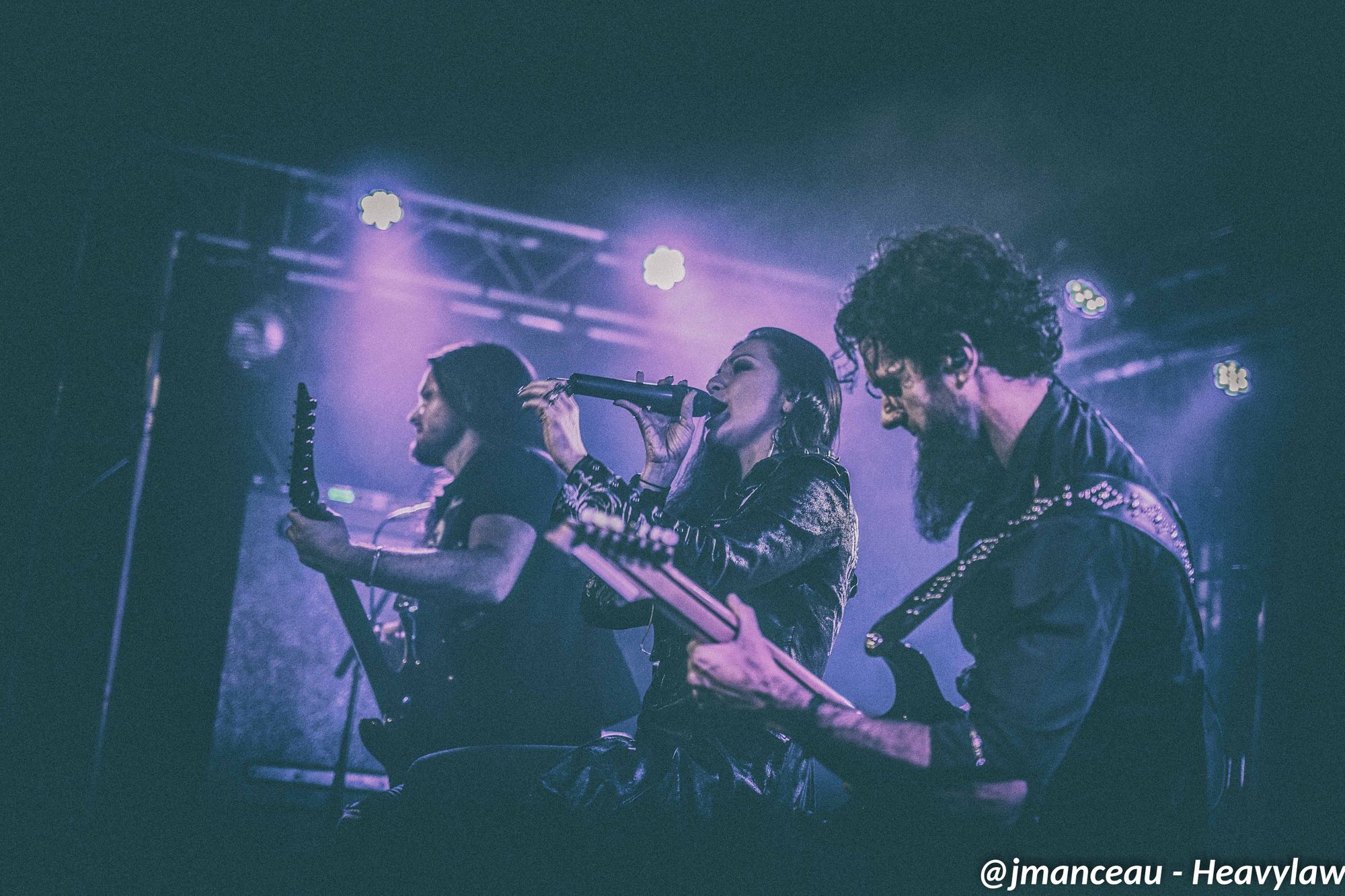 Je ne connaissais absolument rien de ce groupe avant de m’imprégner des derniers albums quelques heures avant ce concert. Deux derniers albums justement où figure au chant une Française, la pétillante Emmanuelle Zoldan, chanteuse mezzo-soprano de formation lyrique, qui mérite largement sa place au sein de cette formation étiquetée métal gothique symphonique, et qui dès son entrée capte toute l’attention sur elle.