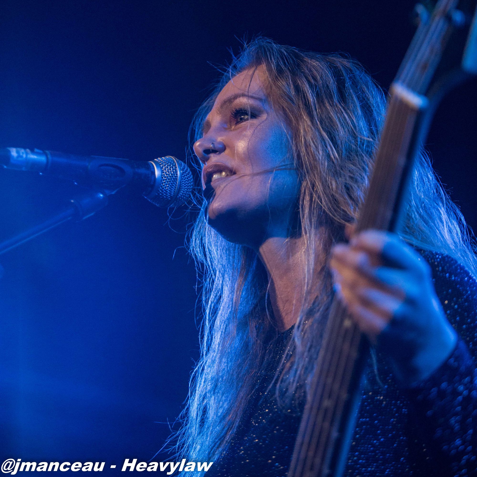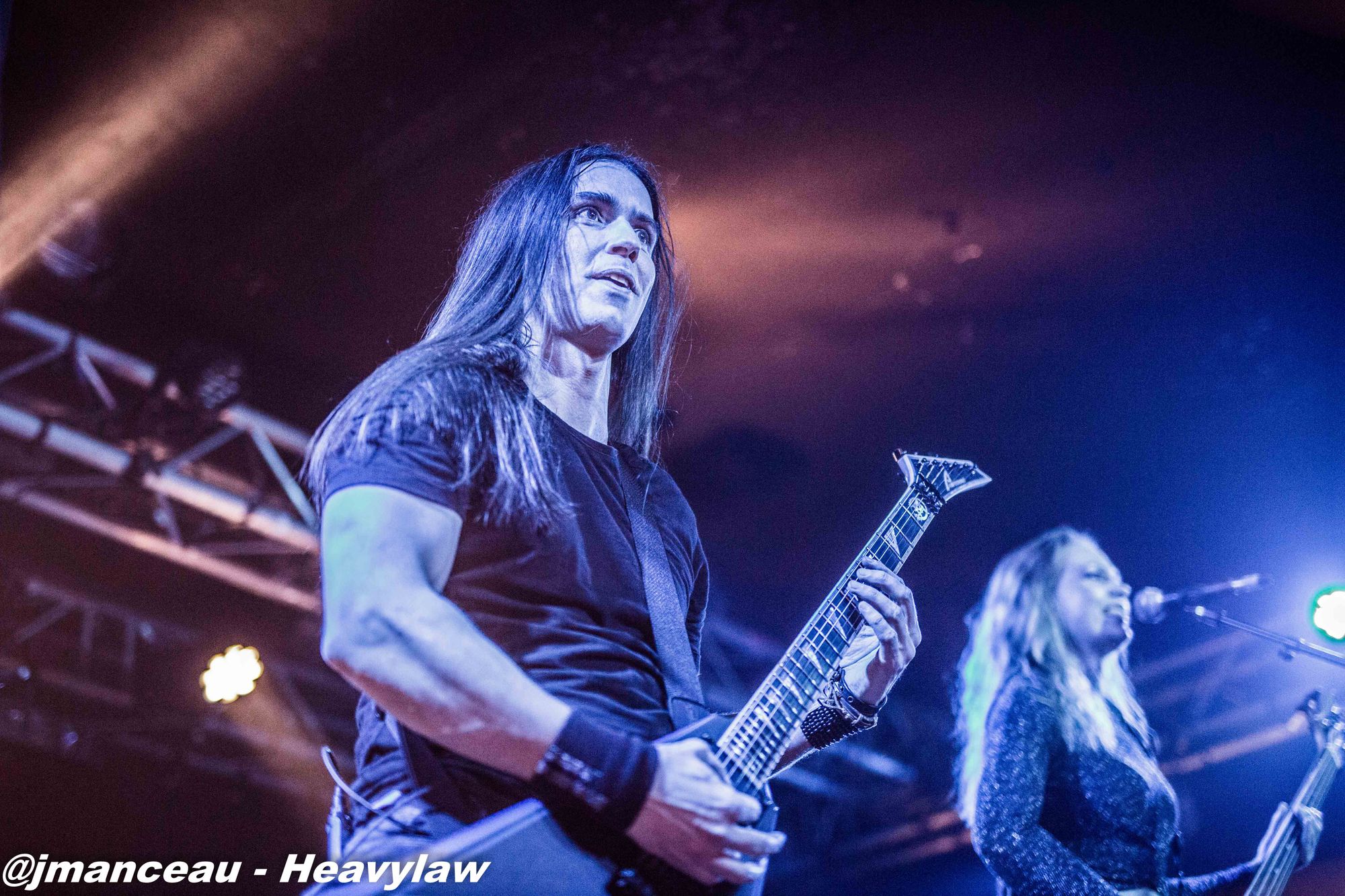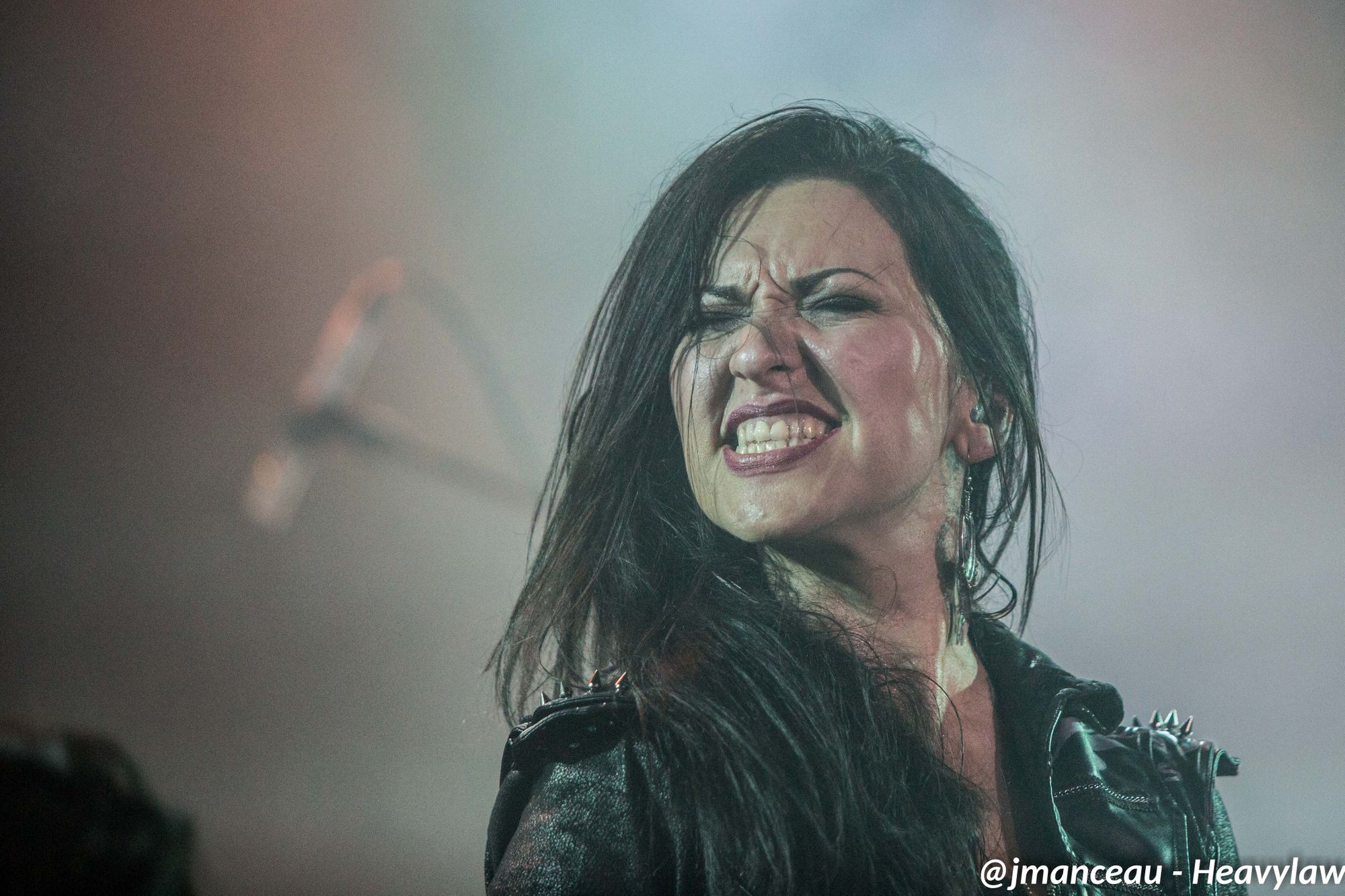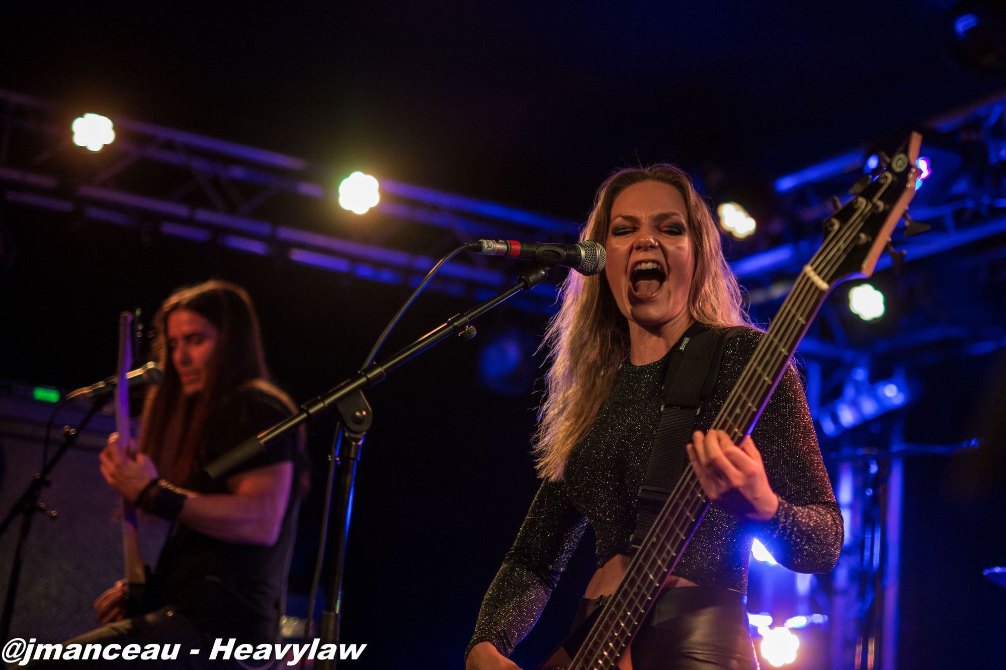 Je ne connaissais absolument rien de ce groupe avant de m’imprégner des derniers albums quelques heures avant ce concert. Deux derniers albums justement où figure au chant une Française, la pétillante Emmanuelle Zoldan, chanteuse mezzo-soprano de formation lyrique, qui mérite largement sa place au sein de cette formation étiquetée métal gothique symphonique, et qui dès son entrée capte toute l’attention sur elle.