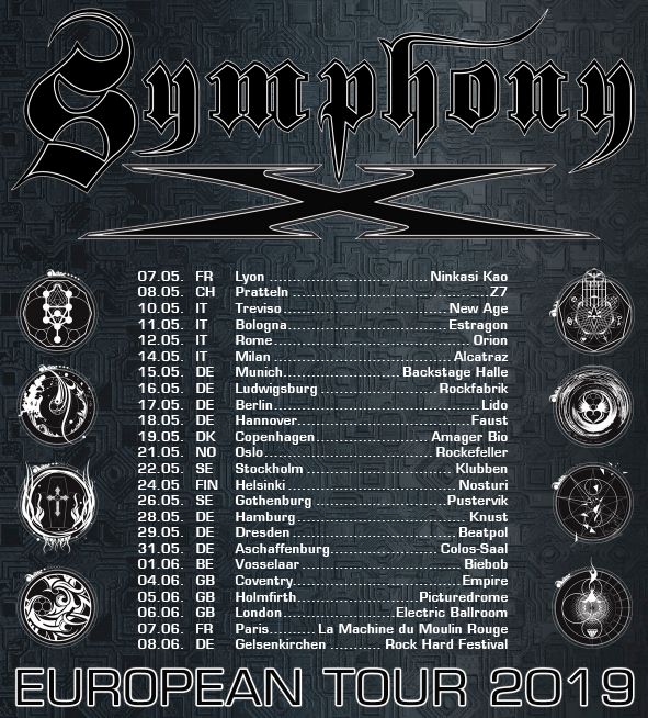 Les américains de Symphony X (Power Prog) passeront par la France pour leur tournée européenne de 2019.